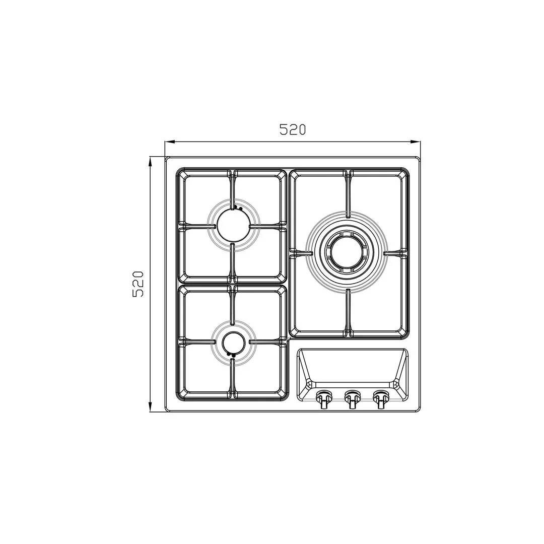 ابعاد کلی اجاق: 52×52 سانتیمتر