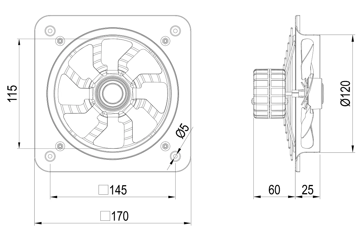 هواکش خانگی فلزی با پروانه فلزی 120 میلیمتری سری VMA-12S2S