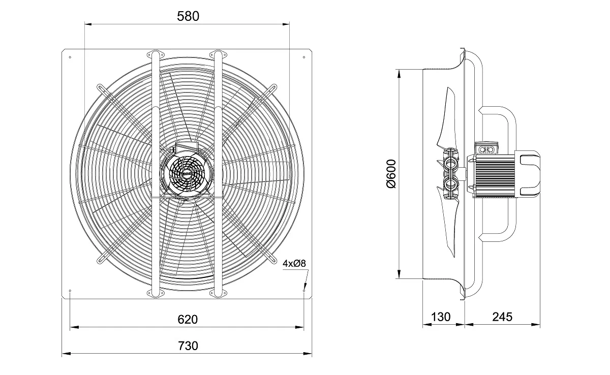 | قطر پروانه | 600mm |