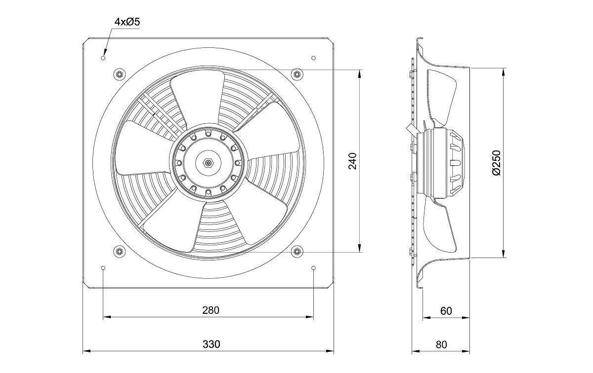 هواکش صنعتی آکسیال (طرح آلمان – قاب چهارگوش) سری VIF-25V4S با پروانه 250 میلیمتری
